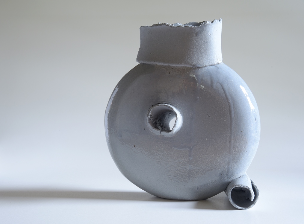 De vorm van de vaas refereert aan een lens. Een troebele lens, maar steeds met een gat om door heen te kijken, om voor- en achterkant met elkaar te verbinden.